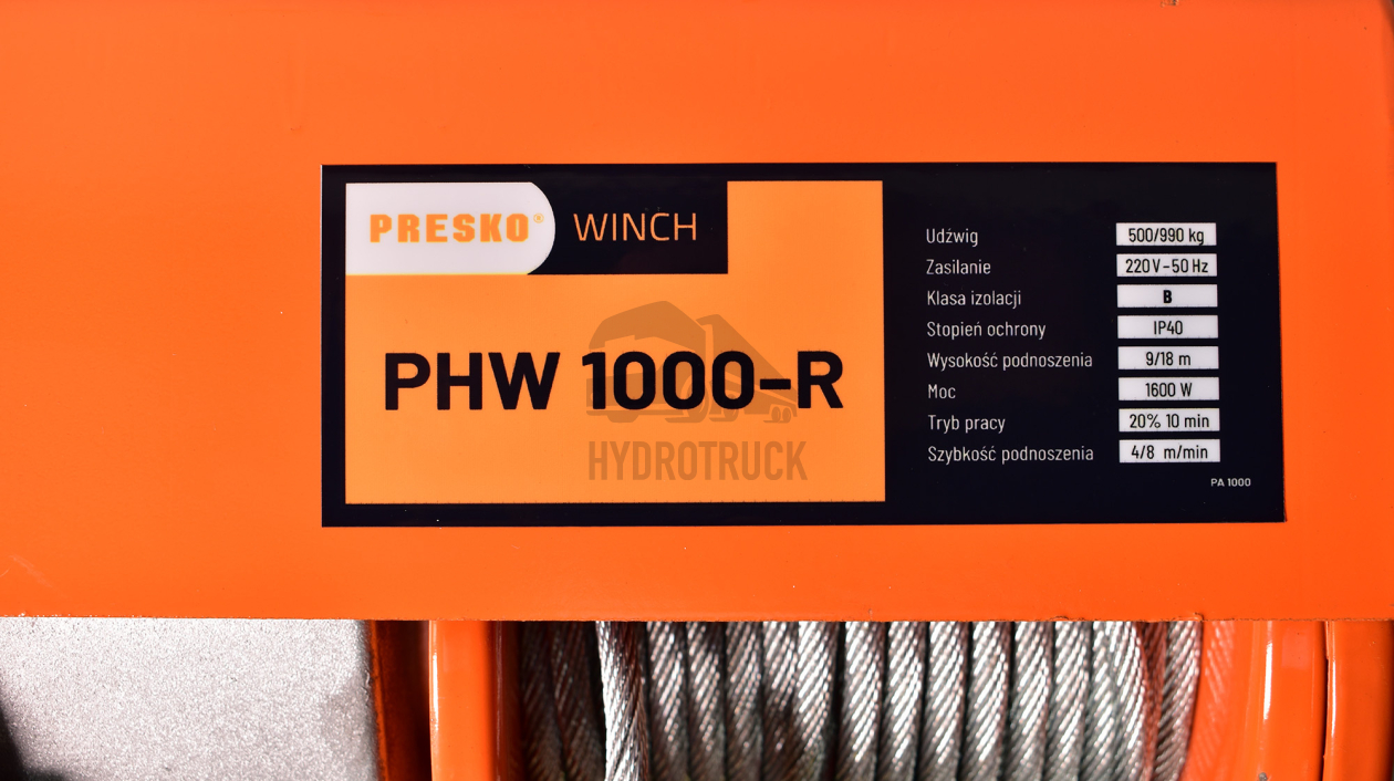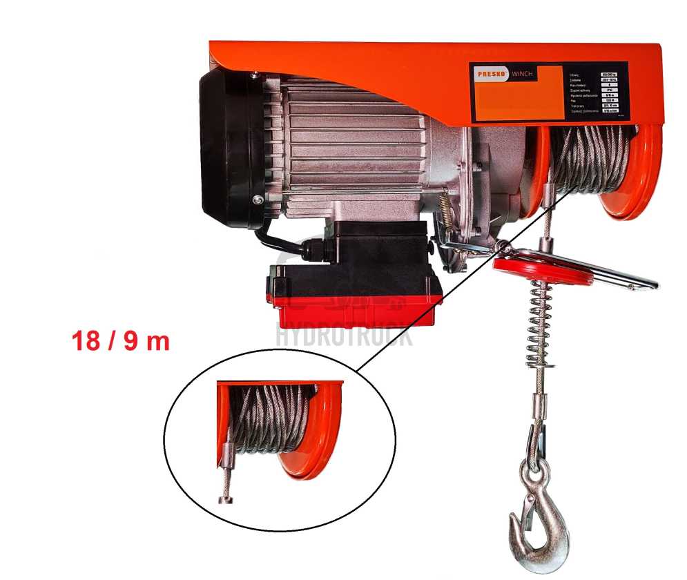 Elektrický naviják PHW1000-R, 230V, 500/990kg s dálkovým i kabelovým ovládáním